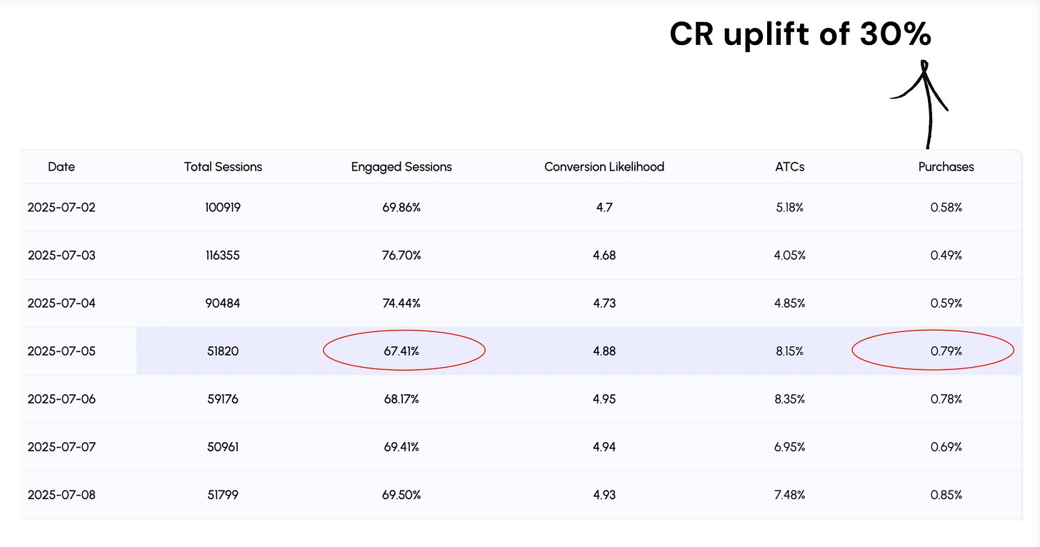 Not all sessions are created equal. Two people can visit your PDP, spend 15 seconds, and bounce—but one might be 10X more likely to convert than the other.