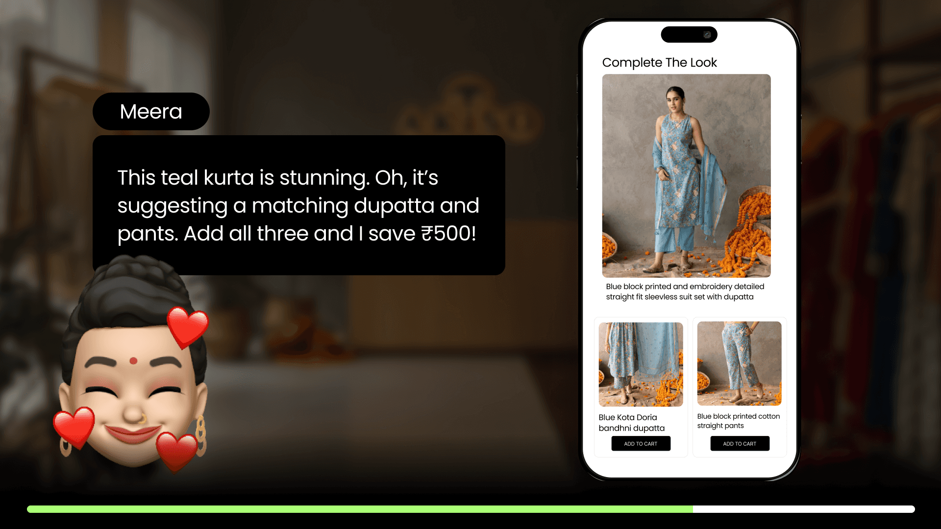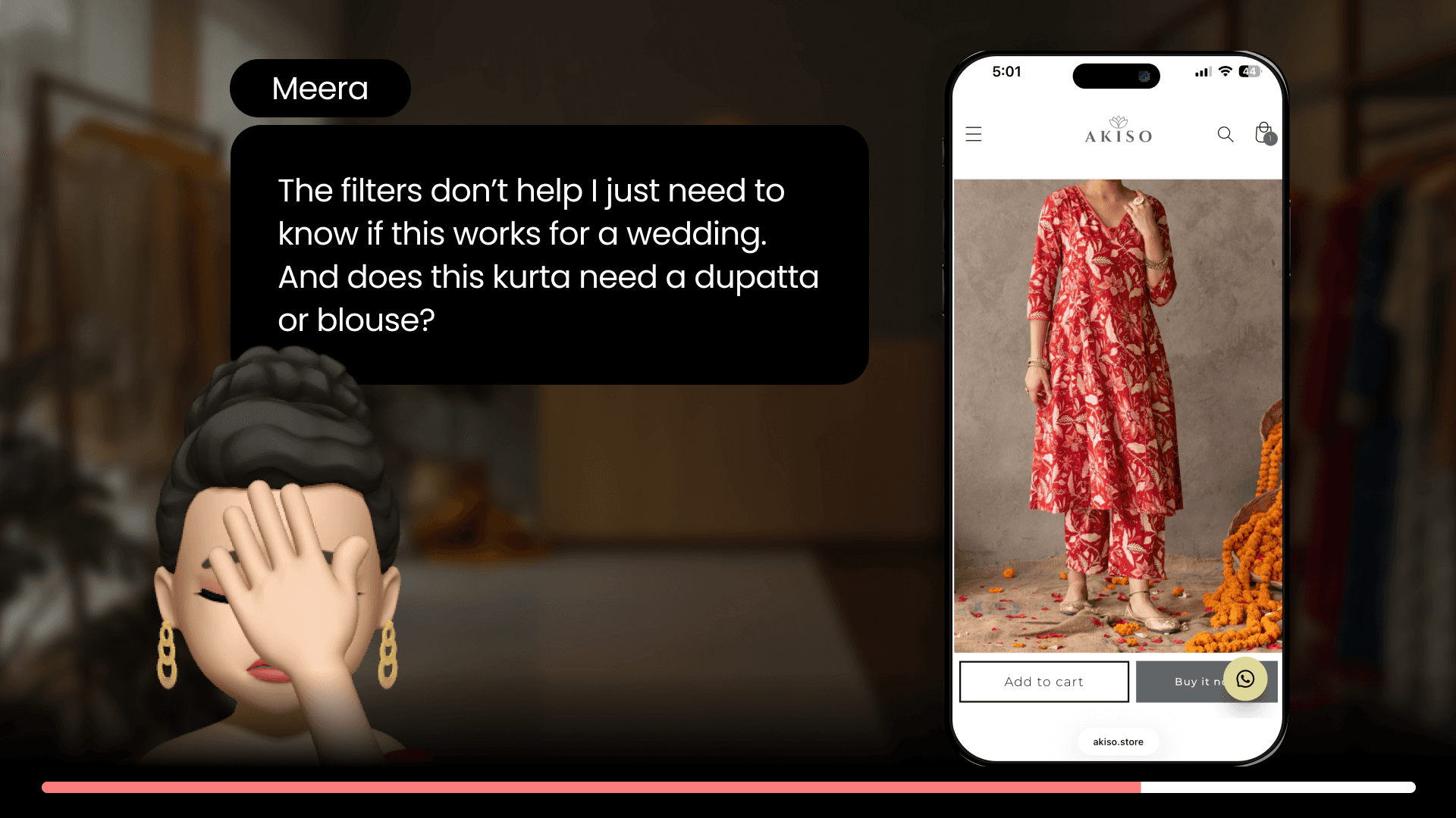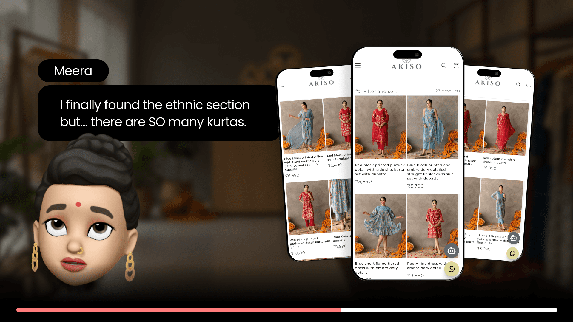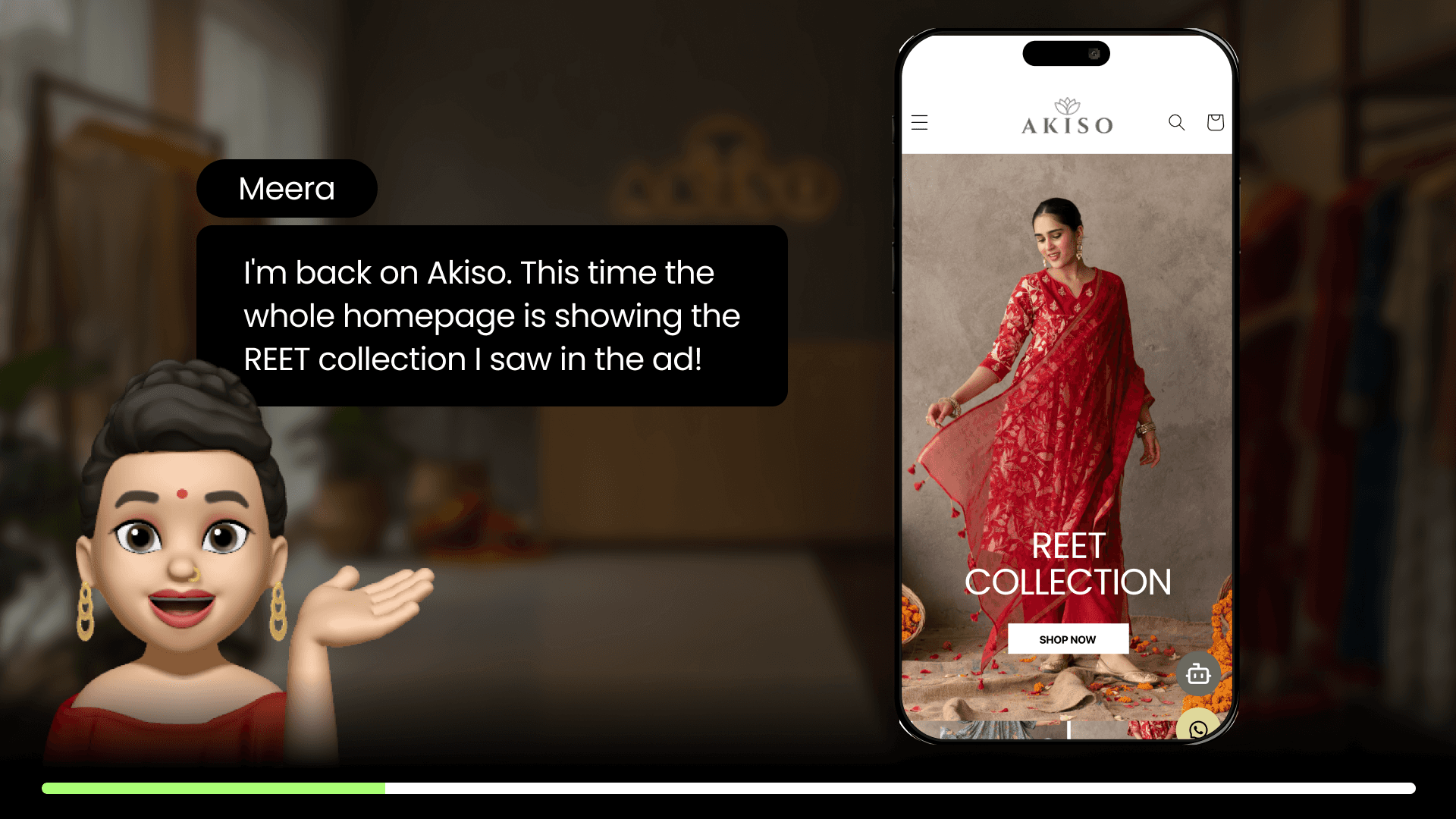 When Meera returned to Akiso, Helium had already detected her festive intent from the Ad click and reshaped the store to match her wedding shopping mindset…
